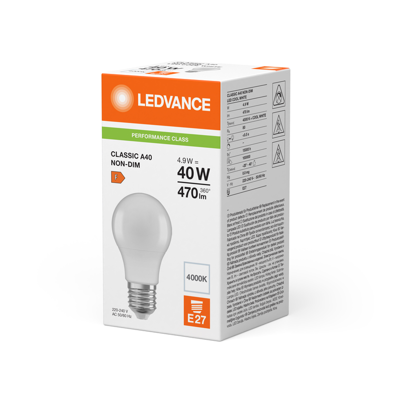 Ampoule de technologie LED à culot E27 de forme Standard de finition Dépolie d'une puissance de 4.9w de marque LEDVANCE.
