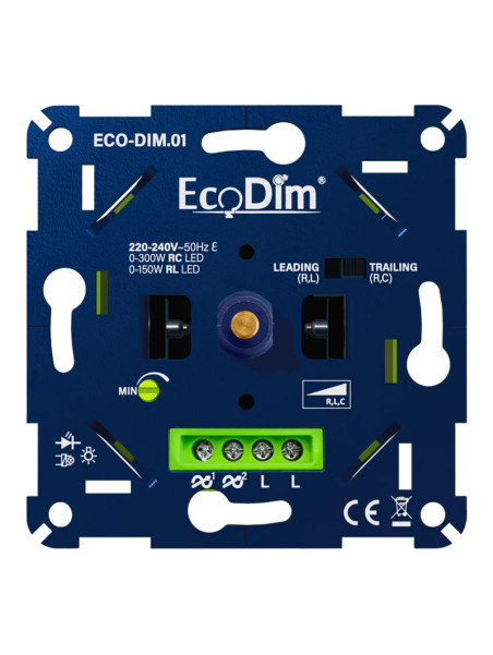 Universal LED dimmer with front and rear phase-cut (RLC) 0-300W (RC)/0-150W (RL).