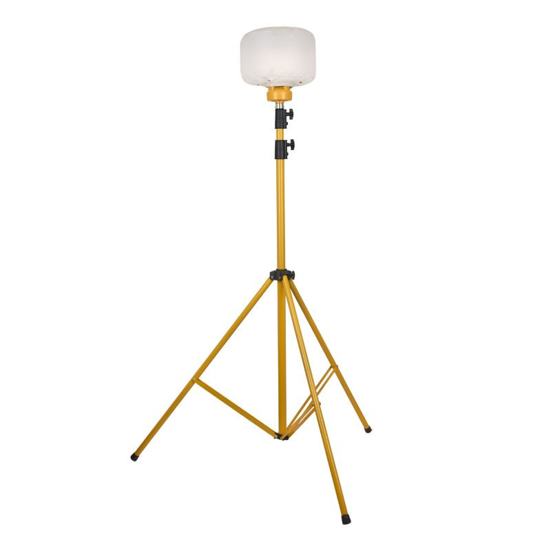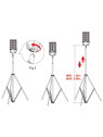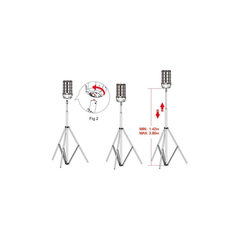 The LED Corn is securely attached to the tripod using an M10 bolt. The height is adjustable from 142 cm to 380 cm.