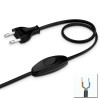 Cordon alimentation 2x0,75 Noir 1,5M 2P + interrupteur (1m+0,50m)